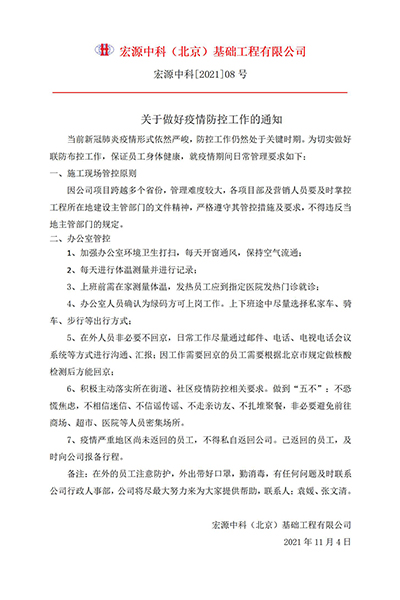 近期國內新冠肺炎疫情形勢依然嚴峻,防控工作仍然處于關鍵時期。宏源中科積極響應國家防疫政策,下發《關于做好疫情防控工作的通知》,要求在外出差人員嚴格遵守當地相關疫情管控政策,非必要不回京。公司內部加強疫情管控,每天進行體溫檢測及行程綠碼驗證,確保自身健康的同時為國家防疫政策助力。